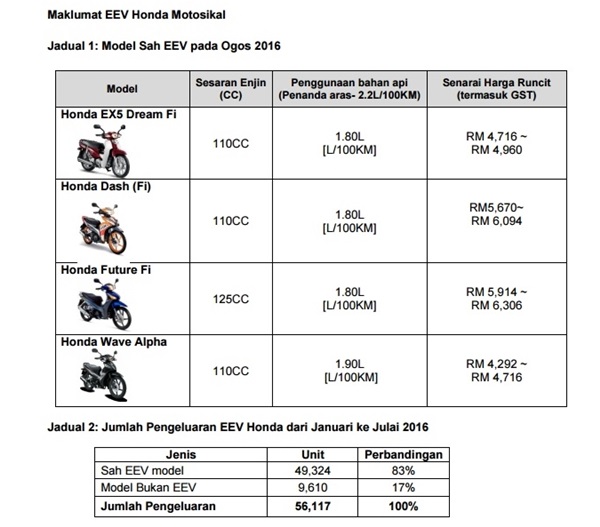 Boon Siew Honda (BSH) hari ini mengumumkan bahawa empat model motosikalnya telah menerima piawaian EEV daripada Jabatan Pengangkutan Jalan (JPJ).