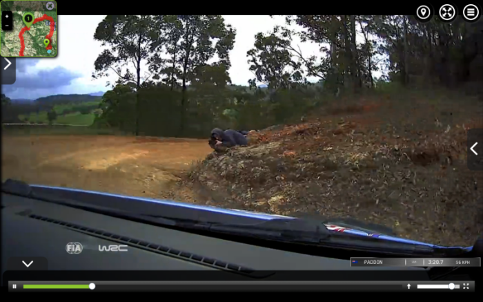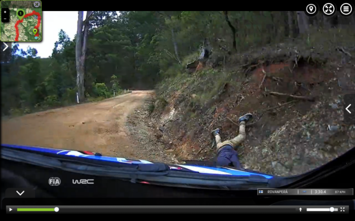 Kejadian tersebut dirakam baru-baru ini oleh kamera di dalam kereta yang dipandu oleh pelumba Otta Tanak, Jari-Matti Latlava dan Hayden Paddon ketika bersaing di peringkat ke-12 perlumbaan berkenaan.