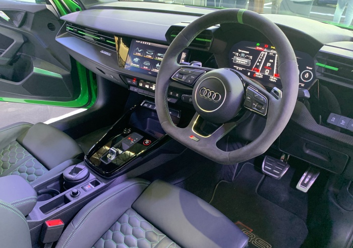 Ruang kabin RS 3 Sedan memang sporty dengan skrin Audi Virtual berukuran 12.3 inci, meter digital sepenuhnya 10.1 inci, paparan head-up bersama paparan grafik RS khas dan paparan info penting untuk sebuah kereta berprestasi tinggi.