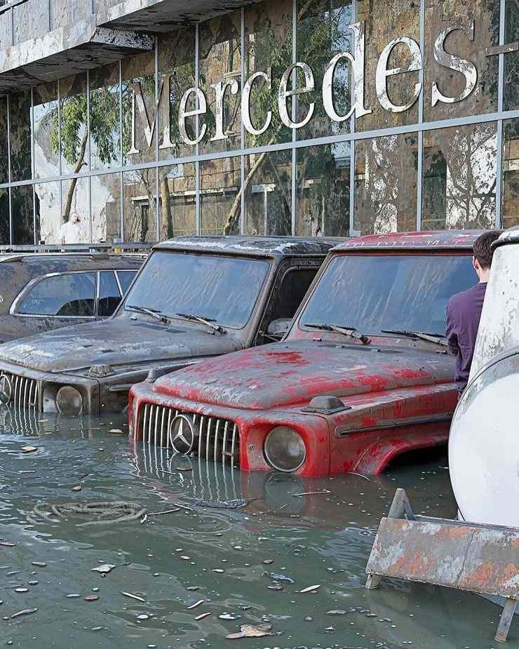 Turut menerima nasib yang sama ialah 2 unit Mercedes-Benz G63 AMG yang diparkir di luar premis jualan Mercedes yang tidak sempat untuk dialihkan. Bukan SUV ini sahaja, malah banyak lagi model Mercedes yang diparkir disini boleh diisytihar sebagai besi buruk.