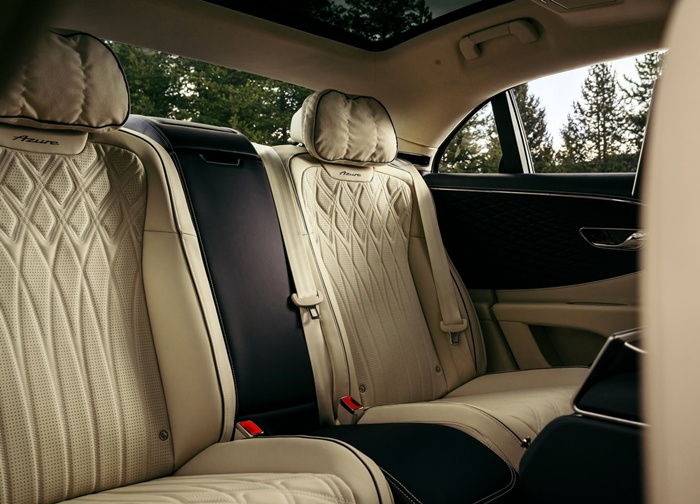 Terima kasih kepada jarak roda yang telah diperpanjangkan sehingga 130mm yang membolehkan secara tidak langsung ruangan kabin penumpang belakang sedikit lebih luas. Sebagai tambahan, Flying Spur Azure juga dilengkapi dengan sunroof panoramik kaca ke kaca sebagai sebahagian daripada spesifikasi.