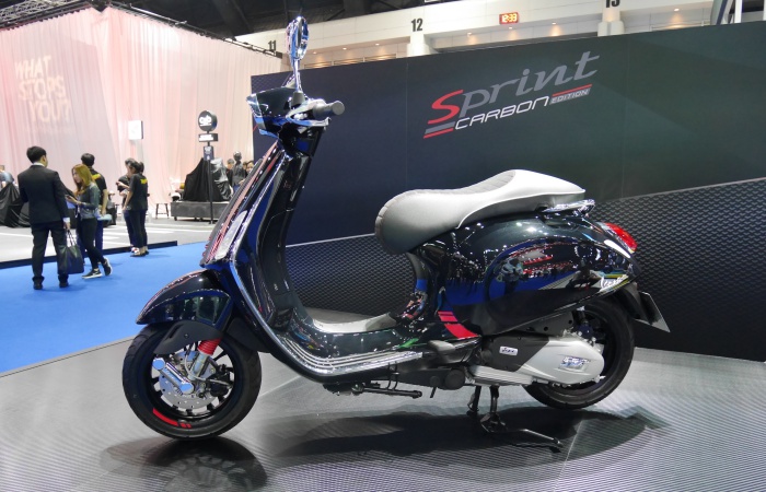 Apa yang menarik perhatian ialah Vespa Sprint 150 i-Get Carbon Edition. Sebagaimana namanya, ia dilengkapi beberapa komponen gentian karbon.