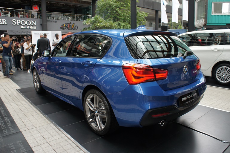 BMW 120i M Sport yang dipasang tempatan didatangkan dalam warna putih, hitam, perak, kelabu dan biru. Harga (di atas jalan, tidak termasuk insurans bersama Jaminan Perbatuan Tanpa Had Selama Lima Tahun dan Program Servis Berjadual Secara Percuma BMW Malaysia) ialah RM219,800 seunit.