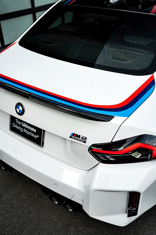 Edisi khas ini tampil eksklusif dalam warna Alpine White yang menyerlah, dihiasi dengan jalur BMW Motorsport buatan tangan (hand-painted graphics) yang diinspirasikan oleh BMW 2002 turbo.