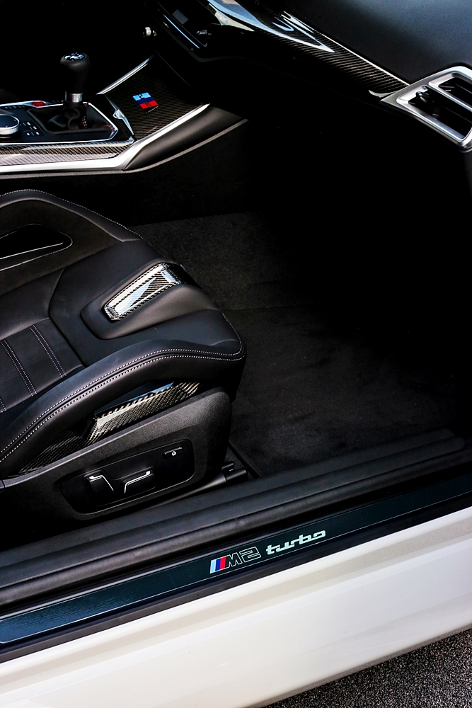 Apabila pintu dibuka, pemandu dan penumpang akan disambut dengan plat ambang unik yang terukir tulisan M2 turbo.