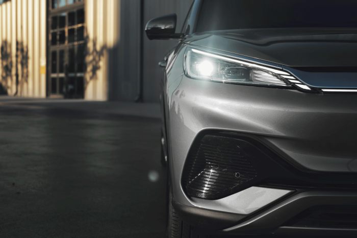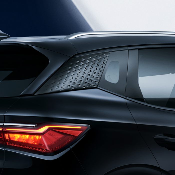 BYD Atto 3 facelift 2024 menerima grafik hitam baharu pada tiang-D selain, tulisan ‘BUILD YOUR DREAMS’ kini digantikan dengan logo BYD.
