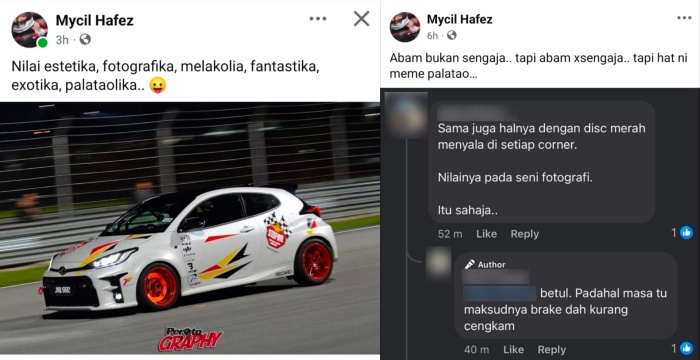 *Terima kasih Mycil Hafez kerana beri keizinan gambar. Korang kalau ada kereta² mahal, kereta² prestasi tapi tak tau macam mana nak pandu masuk trackday kat Sepang, boleh lah tanya beliau. Ada sesi coaching tu kalau mau.