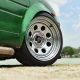 Untuk rupa lebih sado, keseluruhan ruang roda diisi rim krom Steelies sebelum diregangkan dengan tayar Silverstone dari saiz 175/50R-15. Sebagai penutup kepada proses restorasi luaran, ia telah dilayangkan dengan kaler mak kau ijau, yang turut mengandungi bintik-bintik glitter. Baru nampak mahal!