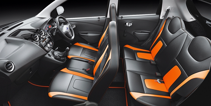 Datsun GO Remix tampil ranggi dengan warna eksklusif Onyx black dengan grafik jingga. Ia juga turut ditawarkan dengan warna dua tona Storm white dengan grafik jingga dan hitam.