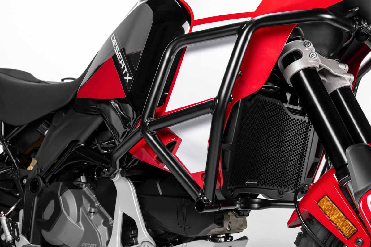 Ducati turut melengkapkan DesertX Discovery ini dengan penghadang angin lebih besar serta ‘center stand’ agar motosikal ini lebih mudah diletakkan dalam apa jua keadaan selain memudahkan penunggang melakukan pembaikan sekiranya perlu.