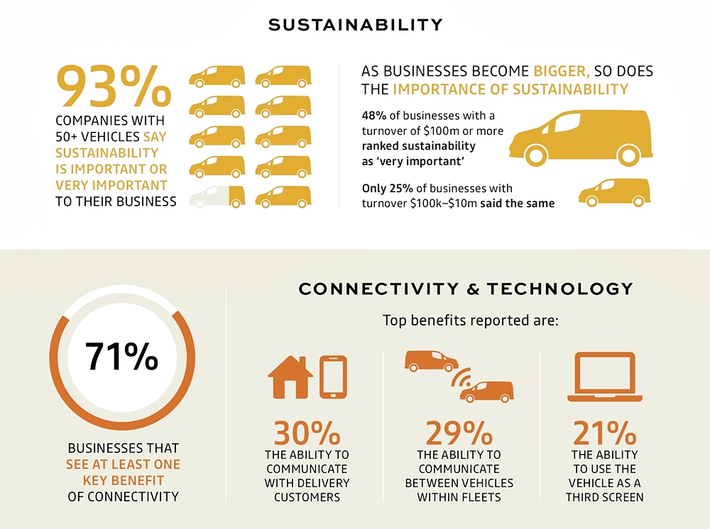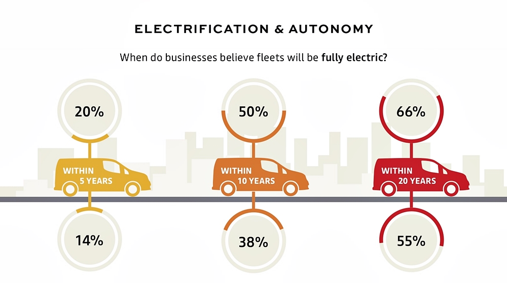 - Dari segi kesediaan organisasi untuk mengguna pakai teknologi baru, lebih daripada satu pertiga (35 peratus) berkata kecekapan perniagaan adalah sebab utama untuk melabur dalam teknologi baru dalam barisan kenderaan mereka