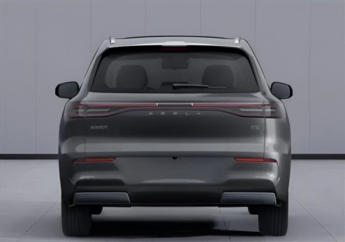 Di belakang, ia tampil dengan jalur lampu melintang penuh serta kemasan krom perak, di samping pilihan logo dan lencana Geely berwarna hitam untuk penampilan lebih moden.