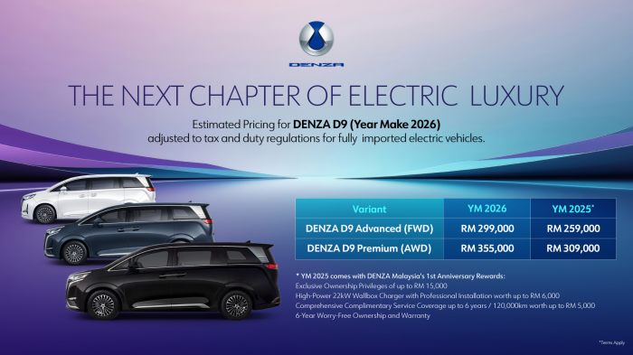 HARGA DENZA D9 2026 MELONJAK 15% – BERMULA RM299K; UNIT 2025 BEBAS CUKAI TINGGAL TERHAD