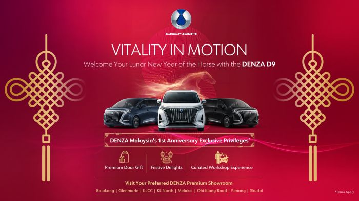 Bagi mendekatkan model ini kepada orang ramai, DENZA Malaysia akan mengadakan acara Rumah Terbuka Tahun Baharu Cina hujung minggu ini di beberapa bilik pameran terpilih.