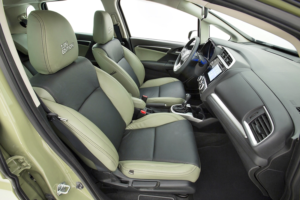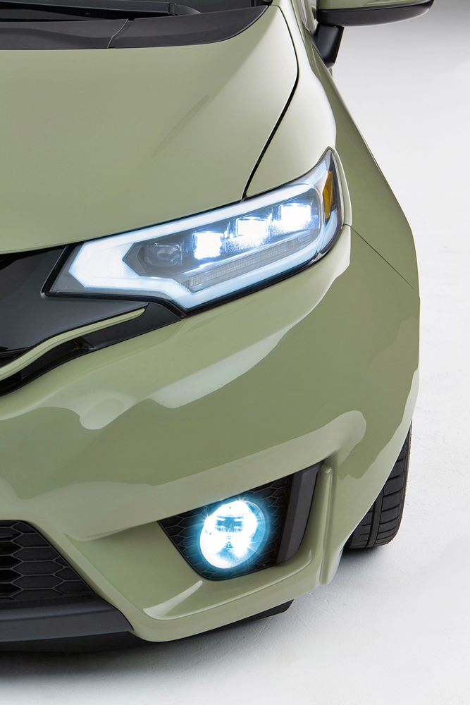 Lampu utama nampak berbeza dari Fit standard dan ia dari Coplus termasuk lampu kabus. Logo H tulen Jepun berwarna merah turut membezakan Fit ini dengan model pasaran Amerika Syarikat.