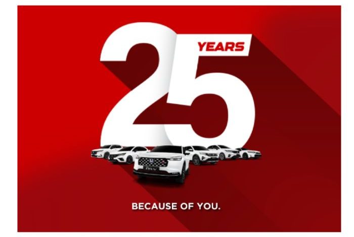 Honda Malaysia meraikan ulang tahun ke-25 kehadirannya di pasaran tempatan dengan melancarkan kempen khas “Because of You” yang berlangsung dari 1 Oktober hingga 31 Disember 2025.