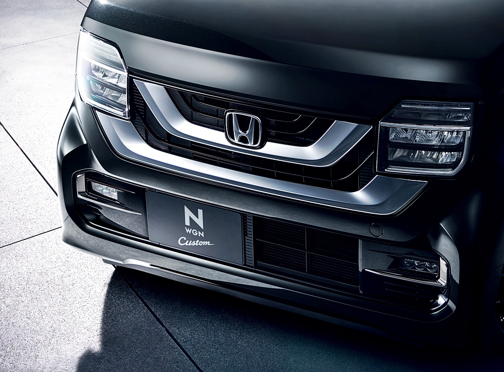 Daripada dua model N-WGN, model N-WGN CUSTOM pula langsung berbeza dan nampak lebih tinggi hasil penggunaan lampu, gril dan bampar depan yang berbeza dan spoiler but.