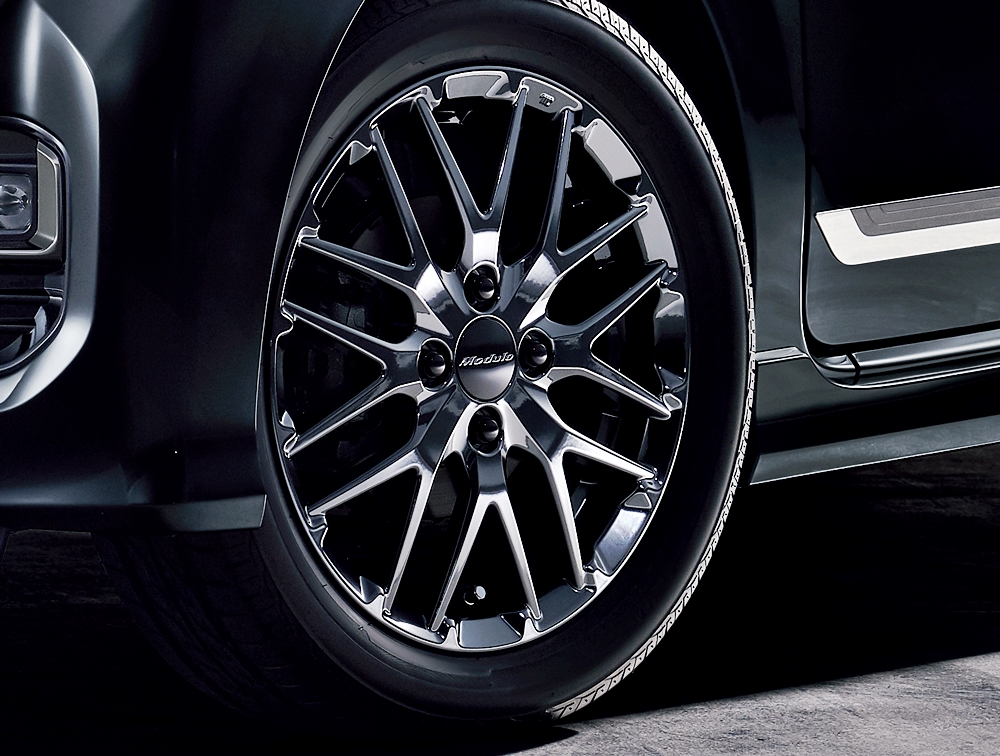 Rim aluminium yang digunakan dari model MS-024 dalam warna Stealth Berlina Black dengan dimensi sama seperti N-WGN Antique Copper STYLE.