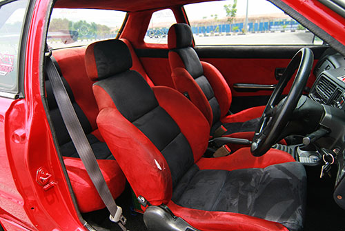Dalaman: Custom trim merah hitam, dashboard Integra, tuil gear Mugen (mungkin)