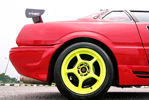 Breknya pulak disalin dengan brek EG9 untuk roda hadapan dan belakang. Manakala ruang rodanya ditutupi oleh rim lebih moden iaitu VolksRacing Gramlight 57C bersaiz 15 inci dengan tayar 195/50 Yokohama Parada. 15 inci sahaja, tapi arch nampak penuh. Zaman kereta ni dulu, pakai rim 15 pun terbeliak ketua kampung tengok!!!