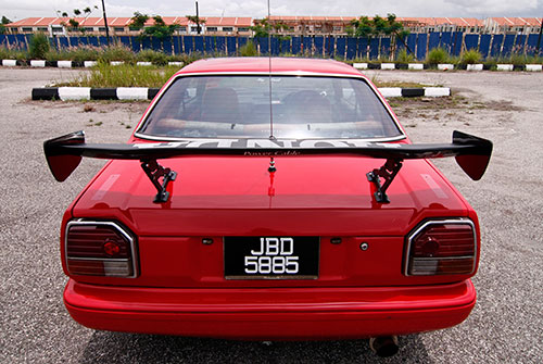 Bahagian luar, buat macam mana pun tak akan nampak pelik sebab bentuk asal kereta pun orang tak kenal. Apa yang saya perasan, lips hadapan datang dari idea Mitsubishi Super Touring, skirting tepi custom dan akhir sekali GT Wing ala Voltex mencucuk di belakang. Kawan saya dari Amerika, Miki kata macam ‘shopping cart’ kalau tengok kereta kecik dengan wing lebar.