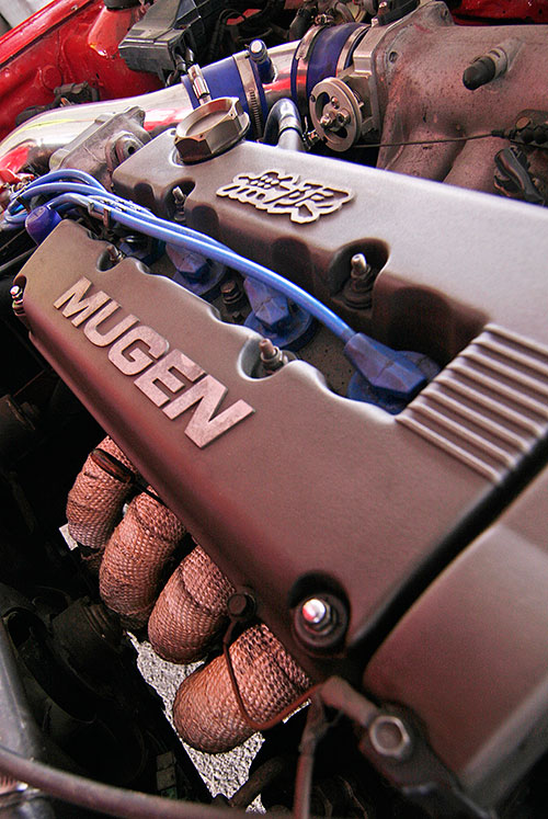 Enjin ini mengalami proses modifikasi yang sederhana. Penapis udaranya disambung pada paip keluli tahan karat, kabel Ultra, thermal wrap pada manifold dan sebuah peredam bunyi 5Zigen. Maka bunyi kebangsaan VTEC pun mulalah kedengaran. Kalau dah pakai straight pipe dengan bullet besar tin Ridsect tak payah nak berlakon baik lah, sekali mengerang, satu kampung boleh dengar.