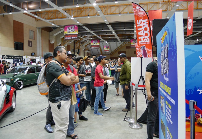 Gerai Hot Wheels sememangnya mendapat sambutan hangat kerana pengunjung sanggup beratur panjang dan barisan itu tidak pernah putus hingga ke petang.