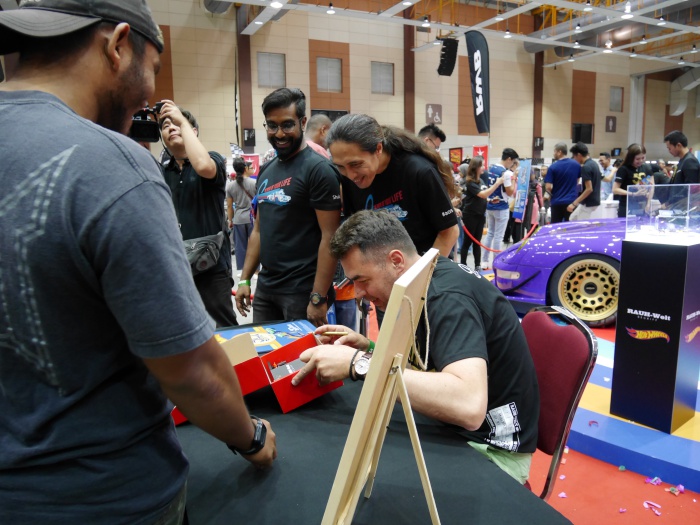 RWB Porsche 911 berwarna ungu itu didedahkan oleh Pengurus Rekaan Produk Global Hot Wheels, Dmitriy Shakhmatov. Dia turut meluangkan masa untuk melayani peminat Hot Wheels, menandatangani autograf dan beramah mesra dengan mereka.