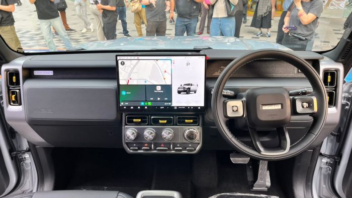 Bahagian kabin pula membawa tema futuristik-retro, dilengkapi paparan 540-darjah “Transparent Chassis View”, tombol putar fizikal di konsol tengah, serta bumbung tinggi yang menyerlahkan ruang dalaman yang lebih lapang.