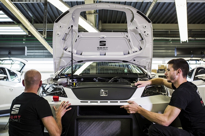 Seat Leon: Berat enjin yang menguasakan kereta Leon Cup Racer adalah 170 kg. Ia adalah antara alatan yang pertama perlu dipasang dan untuk tugas itu, enjin perlu diangkat ke ruangnya menggunakan kren.