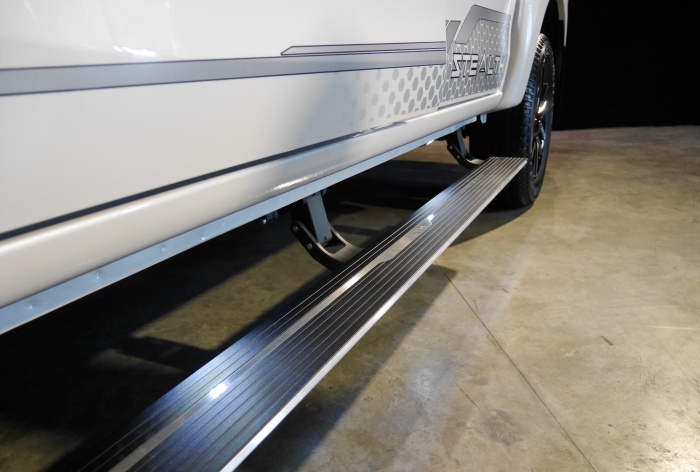 - Pertama dalam kelasnya, trak pikap ini didatangkan dengan ciri Power Step. Power Step membolehkan pemijak kaki sisi akan diturunkan secara automatik apabila pintu dibuka, begitulah sebaliknya. Jika mana-mana pintu dibuka, pemijak sisi dan lampu kecil akan dinyalakan untuk memudahkan pergerakan penumpang.