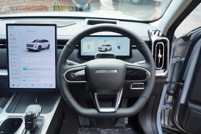Di bahagian dalam, model J7 didatangkan bersama skrin panorama 14.8-inci, papan pemuka LCD penuh, dan paparan kepala ke atas W-HUD baharu, bagi memastikan interaksi lebih lancar, sistem audio Sony serta pengecasan tanpa wayar 50W.
