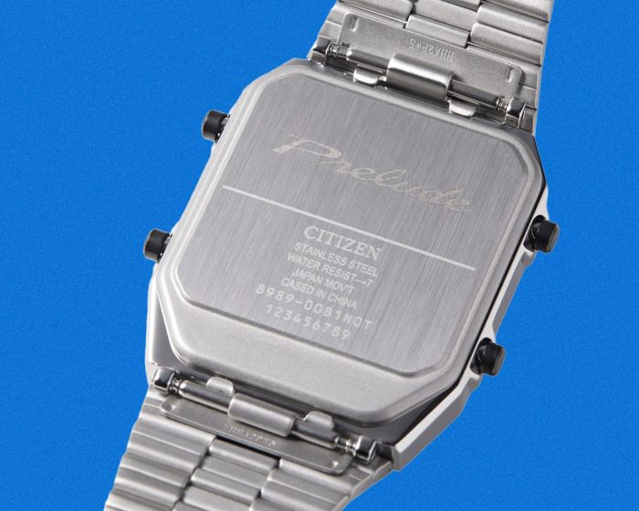 Jam ini hadir dengan sarung keluli tahan karat bersaiz 32.5mm lebar, 40.6mm panjang dan 8mm tebal, dipadankan bersama gelang keluli satu baris yang tirus. Di bahagian belakang, terukir logo klasik Prelude yang dihidupkan semula, bersama spesifikasi asas.