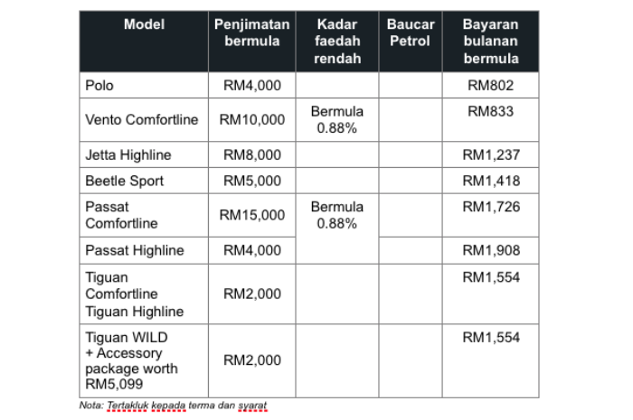 Bukan itu sahaja, nikmati penjimatan hebat dan kadar faedah yang rendah ke atas model-model terpilih Volkswagen sehingga stok masih ada.