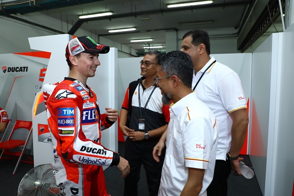 Pengarah Urusan Shell Malaysia Trading, Shairan Huzani Husain turut meluangkan masa untuk melawat garaj Pasukan Ducati dan mengalu-alukan para pelumba tersebut.