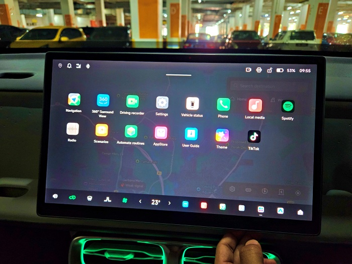 Masuk sahaja ke dalam kabin, pendekatan yang digunakan jelas berinspirasikan gaya minimalis yang semakin popular dalam dunia EV. Susun atur papan pemuka menggunakan garis mendatar yang panjang dengan rekaan yang bersih dan tidak terlalu sarat dengan butang. Nampak cantik tapi pada hemat penulis kurang praktikal