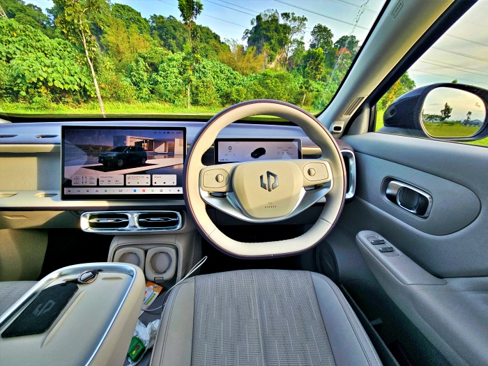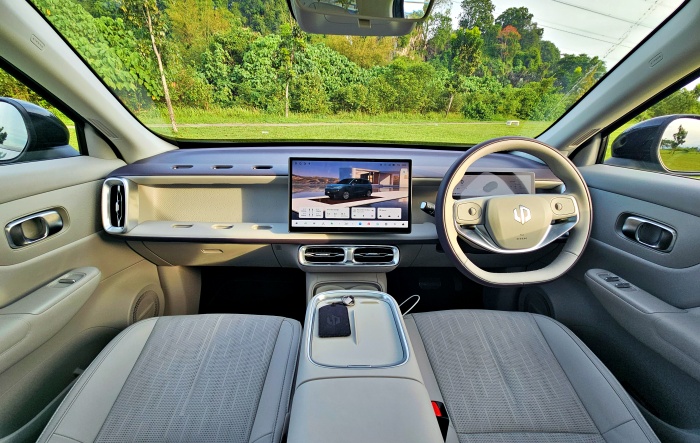 Dashboard berwarna cerah memberikan rasa lapang kepada ruang dalaman, manakala paparan infotainmen berukuran 14.6 inci yang terapung di tengah menjadi fokus utama. Di hadapan pemandu pula terdapat paparan instrumen digital bersaiz 8.8 inci.