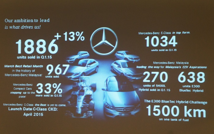 Sebaliknya, momentum positif tersebut dipacu oleh kejayaan model E300 BlueTEC Hybrid yang diperkenalkan ke pasaran tempatan pada Januari 2015. Dari Januari hingga Mac 2015, 638 unit E300 BlueTEC Hybrid berjaya dijual.