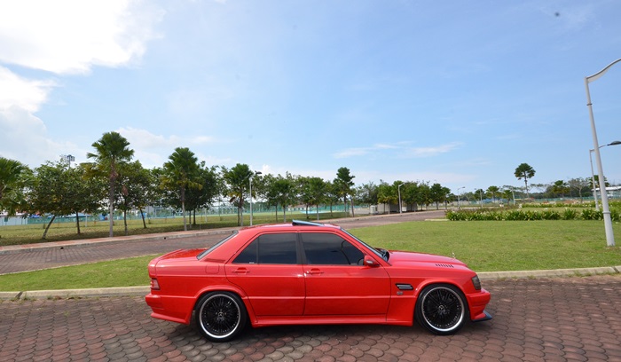 Untuk memeriahkan lagi dunia motorsport di Terengganu, Hasnin telah melangkah setapak ke depan dengan membuat semula Mercedes 190E lama ini. Kalau ikut garis reka bentuk, 190E memiliki transisi bentuk moden dan klasik.