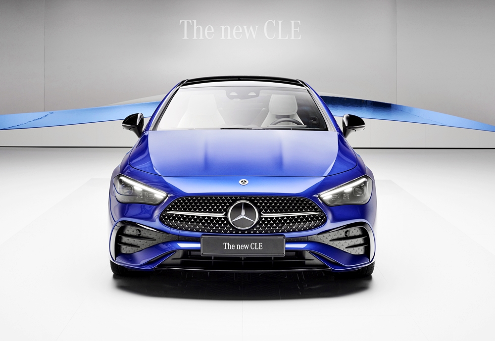 CLE nampak atletik dengan bahagian depan yang melanjur atau hidung ikan yu, bonet rendah, lampu besar LED rata dan gril radiator tiga dimensi. Tukup dengan kontur melambangkan kuasa.