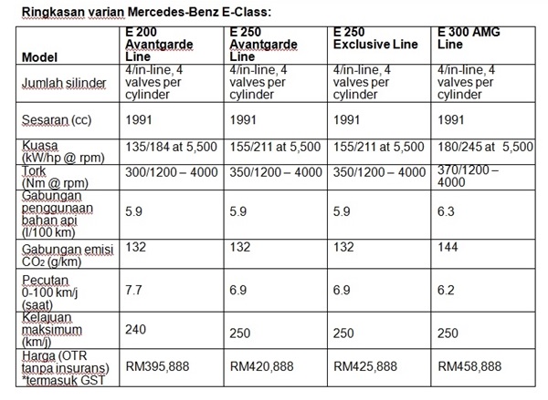 Anda boleh memiliki jentera hebat ini pada harga 458,888 seunit (di atas jalan tidak termasuk insurans). Selain E 300 AMG Line, MBM menawarkan varian lain untuk E-Class seperti E 200 Avantgarde Line, E 250 Avantgarde Line dan E 250 Exclusive Line.