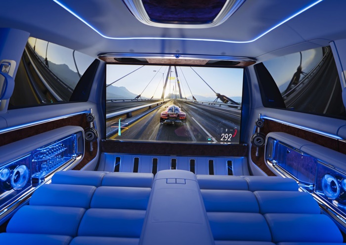 Bahagian lounge penumpang dipisahkan dengan cermin kaca pintar dengan pembolehubah sama ada lut sinar atau pun gelap sepenuhnya untuk mendapatkan lebih ruang peribadi daripada pemandu dengan ciri yang cukup luas di dalamnya.