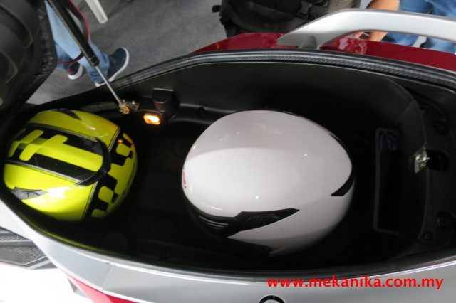Tempat duduk yang lebar dan empuk itu juga membolehkan anda berasa selesa, biarpun untuk jarak tunggangan yang jauh. Ia turut dilengkapi glove box, port USB dan pengecas 12V untuk kemudahan penunggang.