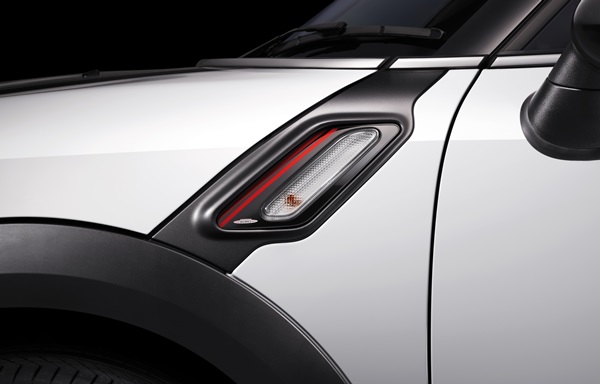 Jentera itu juga dipasang dengan jalur John Cooper Works Sport Stripes dari bahagian hadapan hingga ke belakang serta pada sisi kereta. Bukan itu sahaja, ia menjadi satu-satunya MINI yang menawarkan lampur projektor LED MINI pada pintu yang boleh ditukar. Selain logo MINI, ia juga hadir dengan rekaan bendera Union Jack dan John Cooper Works.