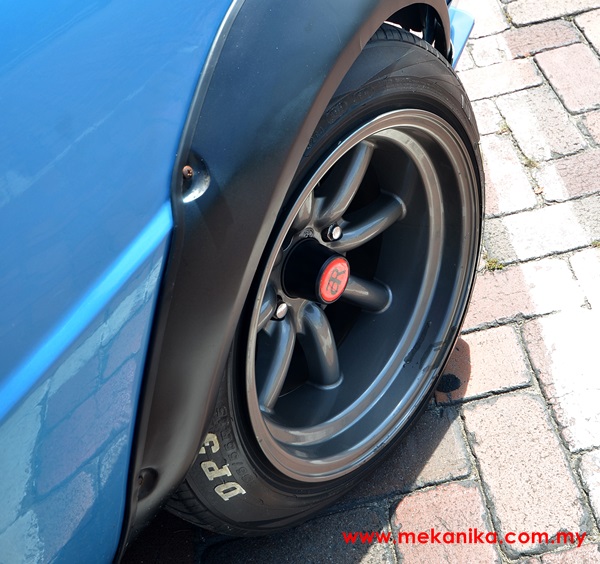 Fender PU ditambah pada arch roda untuk menerima set rim Atara Racing pisang 15X9 di segenap sudut. Tayar pilihan, tayar belakang Yokohama bersaiz 225\50\15 dan depan Duro bersaiz 195\55\15. Cukup kembang untuk memberi ilusi bahawa ia dipasang dengan rim jantan-betina seperti yang tipikal pada model Watanabe Type-R. Kalau beli pisang ori boleh kena kejutan jantung baq ang.