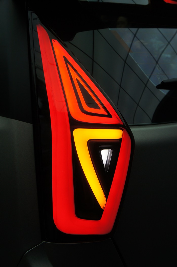 Gayaan itu diserlahkan lagi melalui sepasang roof rails serta salutan keluli (cladding) pada seluruh tubuh yang nyata menyerlah. Tema futuristik diteruskan dengan gabungan dua warna iaitu kelabu matte dan oren.