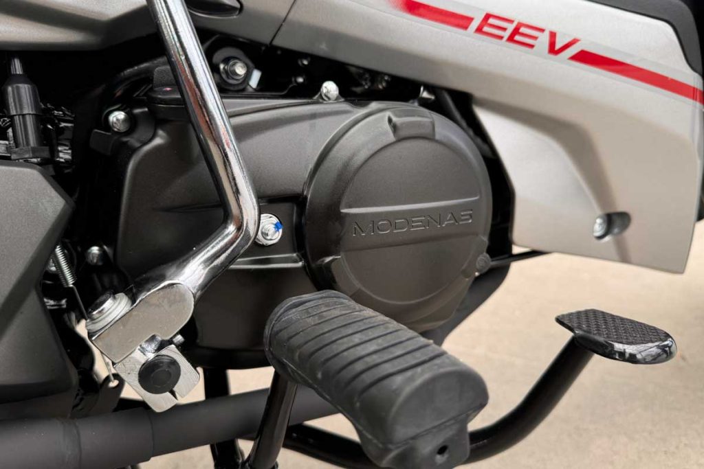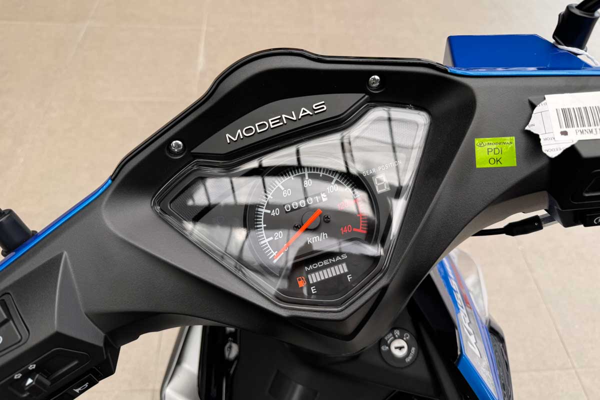Antara perincian lain ditawarkan termasuk lampu kecemasan, panel meter dengan petunjuk gear, tangki bahan api 4.2L dan penghidup elektrik.