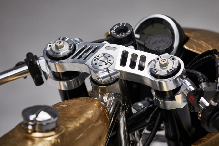 Modifikasi itu melibatkan dua bahagian iaitu fairing hadapan, tangki minyak dan tempat duduk. Komponen tersebut kemudian dibalut dengan kepingan kerajang berwarna emas menggunakan tangan.