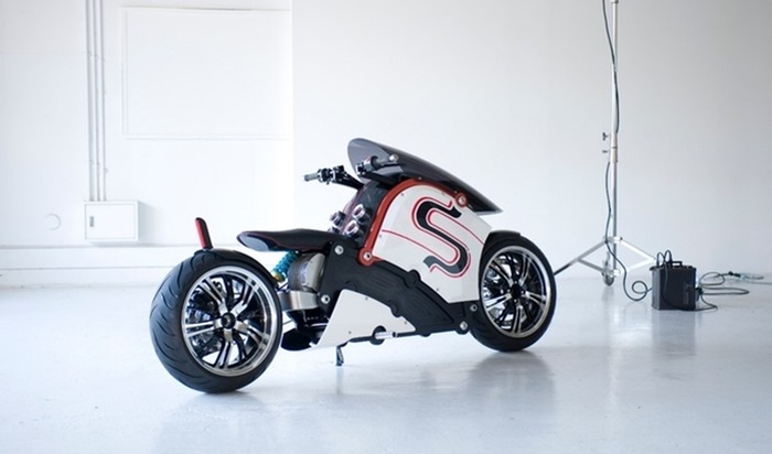 Bateri lithium-ion yang dipasang pada motosikal buatan tangan ini dicaj penuh dalam masa lapan jam dan boleh mencapai jarak sejauh 160km.