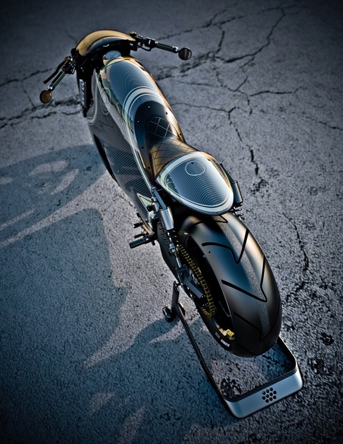 Jentera itu dilengkapi sebuah enjin V-Twin bersama rekaan badan tersendiri yang diperbuat daripada gentian karbon, titanium dan besi berkualiti pesawat angkasa lepas.